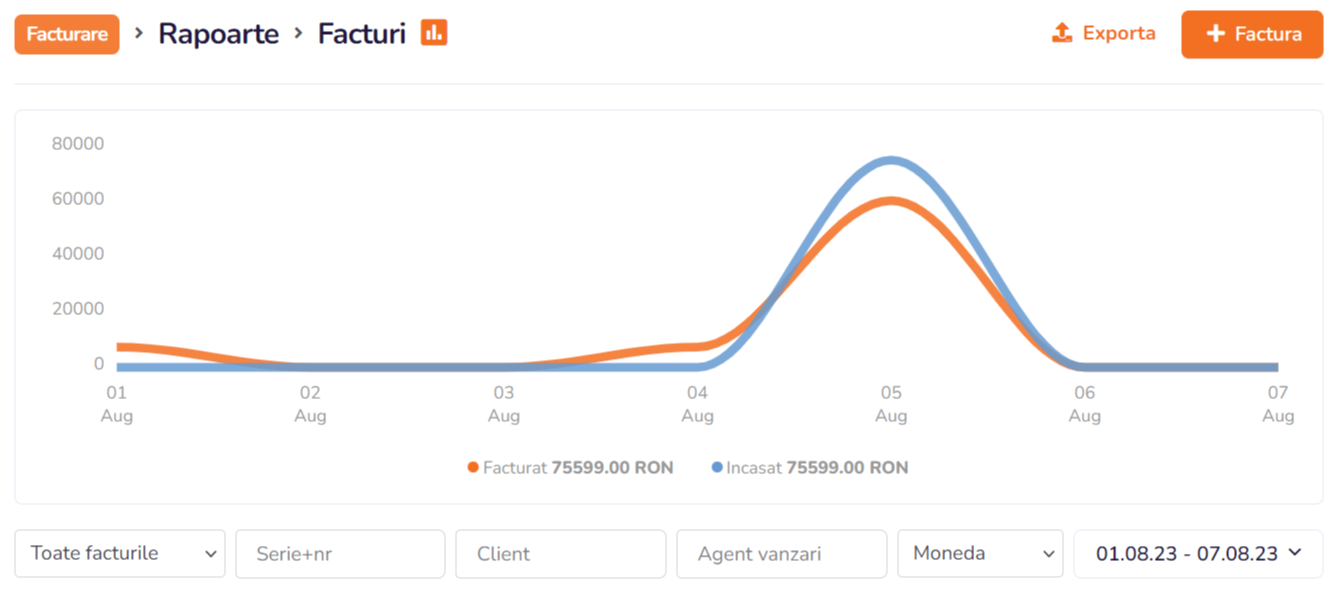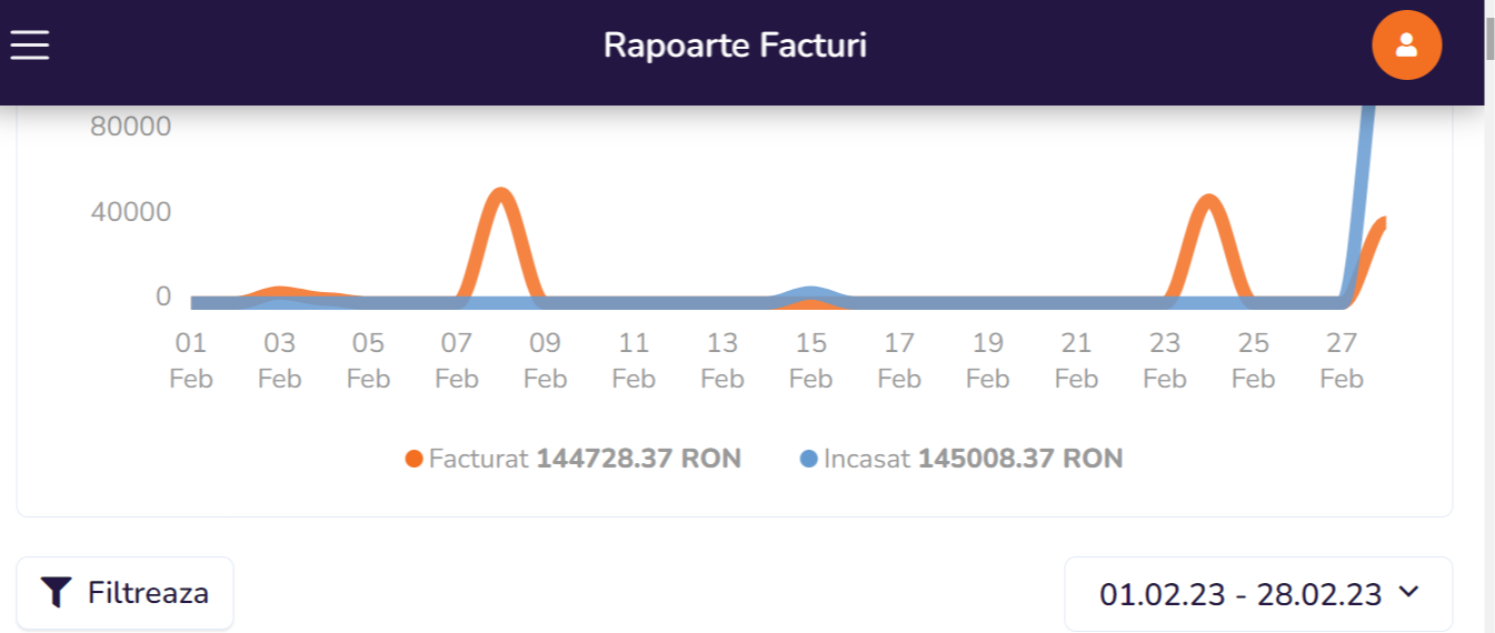 In primul grafic sunt incasarile din luna februarie 2023 iar in al doilea sunt incasarile din prima saptamana din august 2023.
