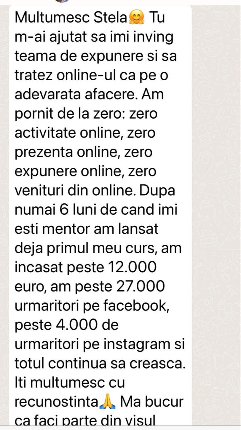 În online, am generat peste 500.000 € din programe educaționale și consultanță de business — fără echipe mari, fără scam-uri și fără să fug după trenduri.